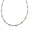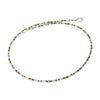 This dainty beaded necklace designed and made by our sister, Tessie (Navajo) features fresh cut seed beads of light blue, gray and yellow accented with silver colors. The finishing clasps are sterling silver. The perfect detail to compliment any outfit!
