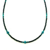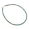 This dainty beaded necklace designed and made by our sister, Meagan (Navajo) features fresh cut seed beads of black accented with turquoise. The perfect detail to compliment any outfit!