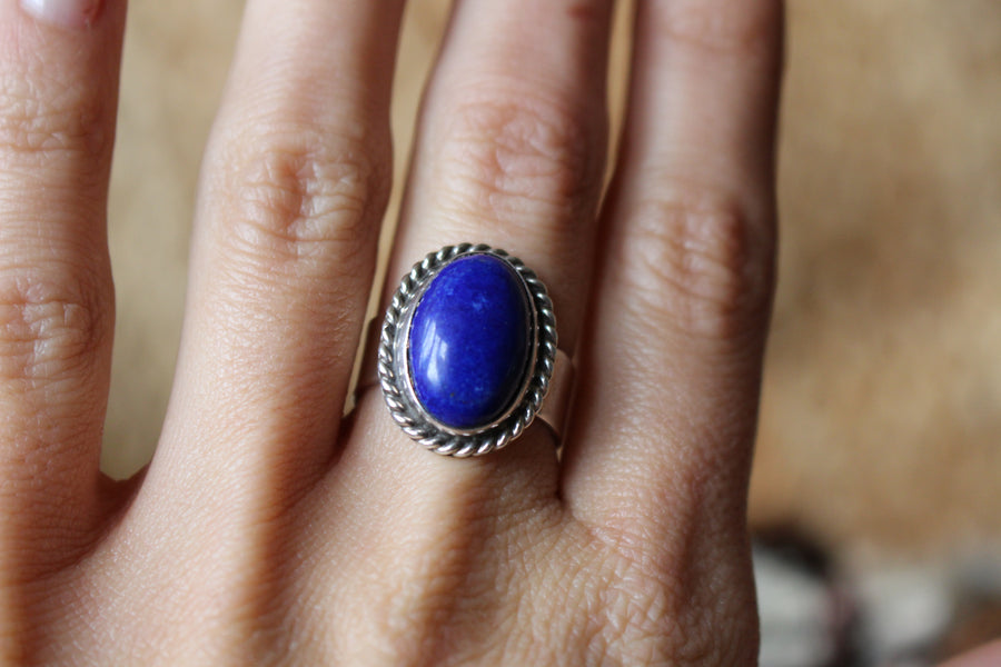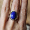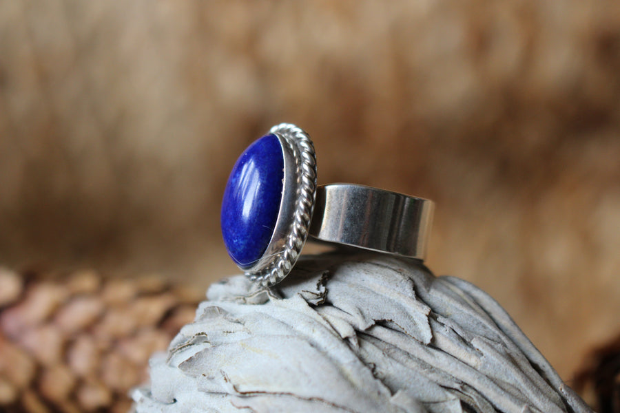 Crafted with lapis and stamped 'sterling silver', this ridge ring is a versatile and elegant addition to your jewelry collection. Its deep blue hue and quality materials make it perfect for any occasion. Elevate your style with this expertly designed and expertly made ring.